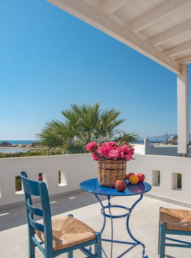 A surprise sunset terrace is located at the top of the house and enables you to enjoy a cocktail or two whilst experiencing magnificent sunset views of Paros and Ios. You can enjoy lazy breakfasts here watching the wind surfers and kite surfers glide across the sapphire blue Aegean sea.