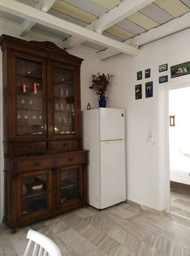 A traditional Greek house with two bedrooms and one bathroom embodies simplicity, charm, and harmonious integration with its surroundings. Typically, the exterior features crisp whitewashed walls and painted blue shutters and doors. A small, intimate terrace extends from the main living area, providing a cozy outdoor space for morning coffee or a glass of wine in the evening to watch the sunset. Inside, the layout is compact yet functional. The living room/kitchen, serves as the heart of the home.