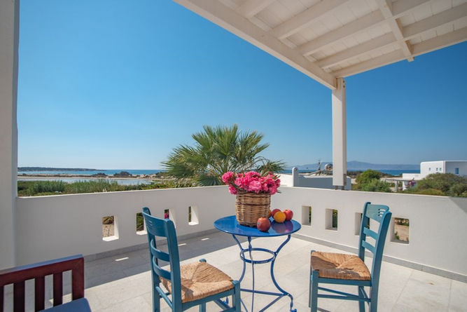 The villa is a traditional cycladic house with plenty of amentiies and space for family and friends to enjoy the beautiful beachfront location and the well kept pool and gardens.  Four bedrooms set over three floors with 4 full bathrooms.  Each bedroom has a veranda and air conditioning. This lovely house provides everyone with both privacy and comfort..